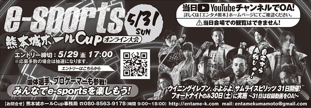 5月31日に熊本市で、eスポーツオンライン大会「熊本城ホールCUP」が開催されます。